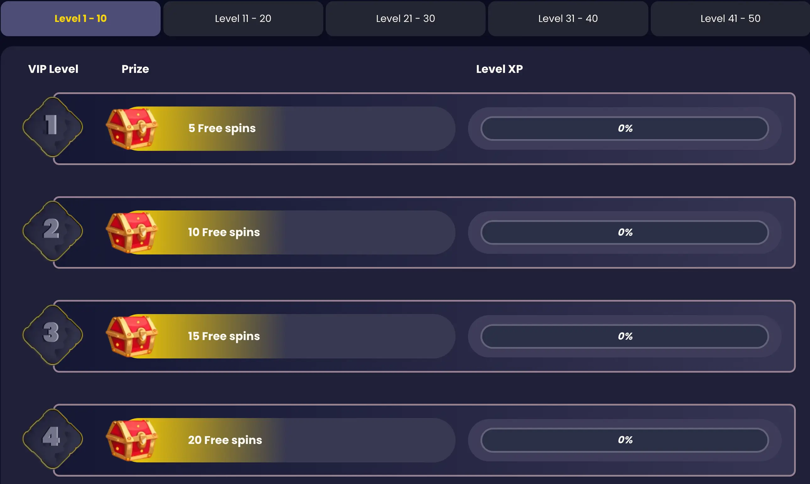 | VIP Program | 50 levels with escalating rewards |